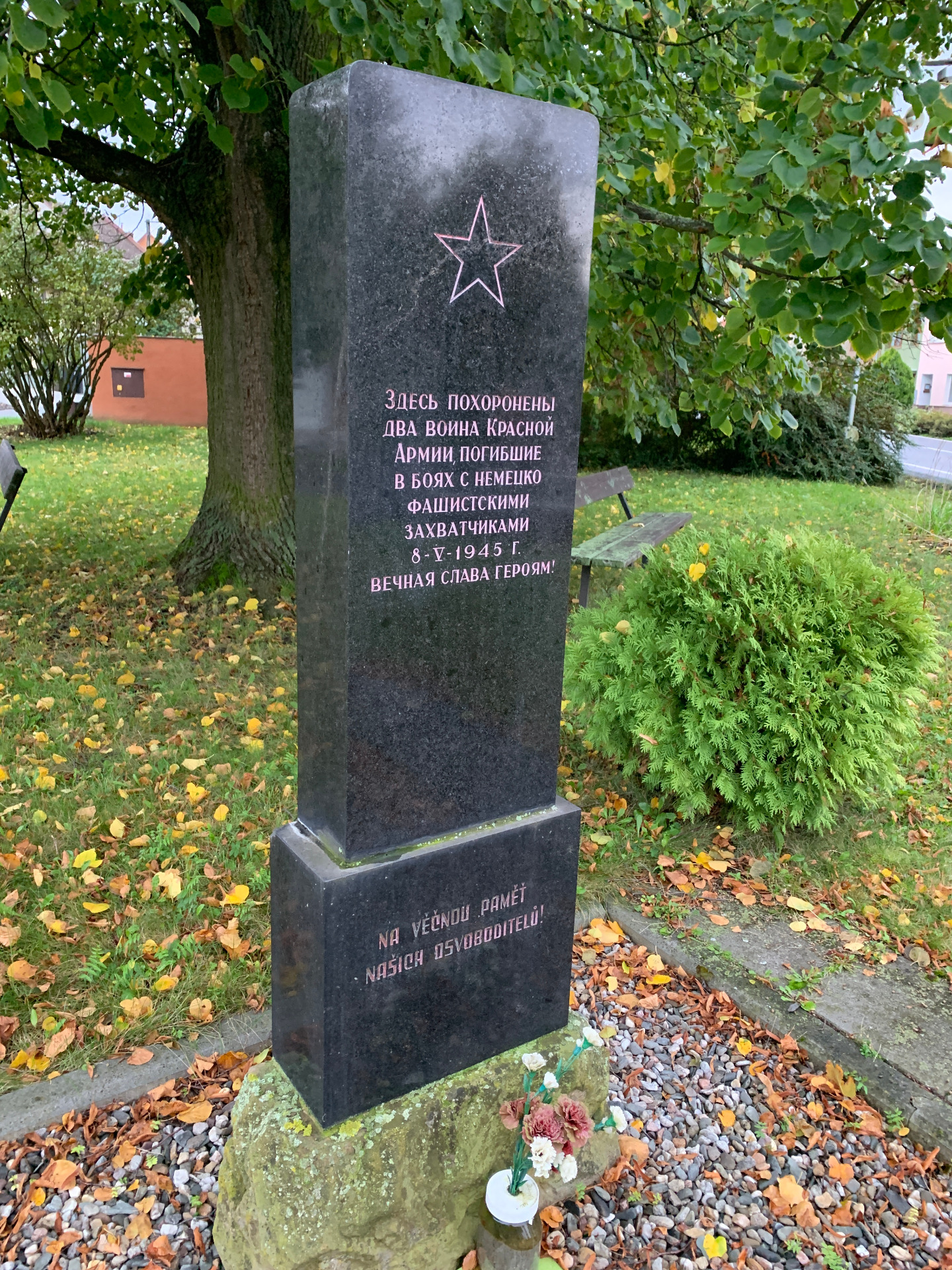 Aby byla pomsta vůči rodině Chocholových úplná, na zpustlou plochu nechali přemístit pomník Rudoarmějcům. Každoročně tam končil lampionový průvod. Na místě našeho rodného domu se sešla celá vesnice, četly se budovatelské projevy, pionýři recitovali oslavné básně.